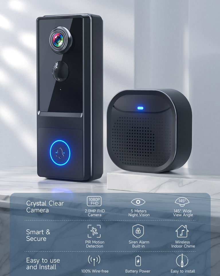 1080P 5000mAh Battery Wifi Smart Visual Doorbell