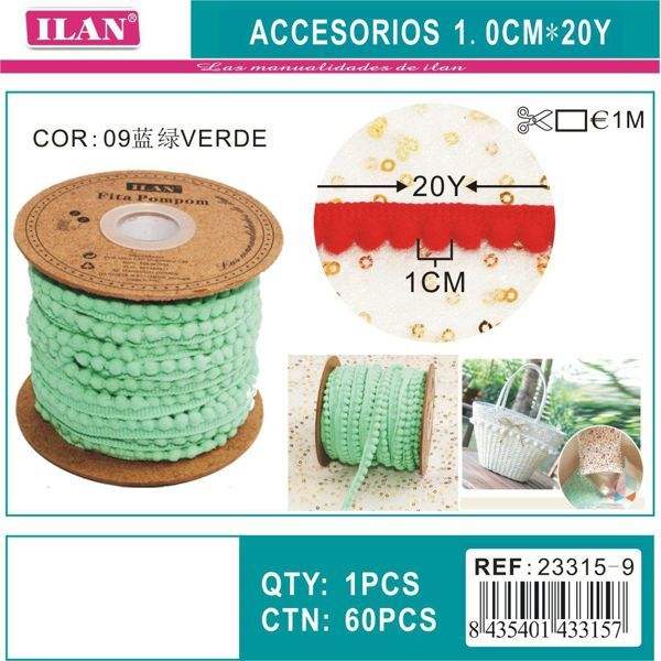 Ruban Pom Pom 1 cm de large, 20 yards, vert, pour décoration artisanale