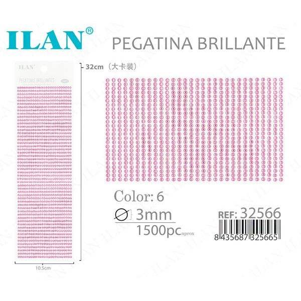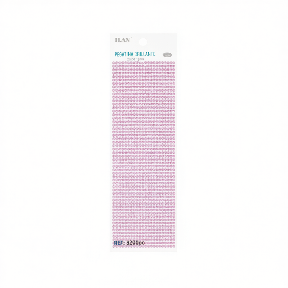 Autocollant en strass brillant Ilan 3 mm 1500 pièces Grand format Rose