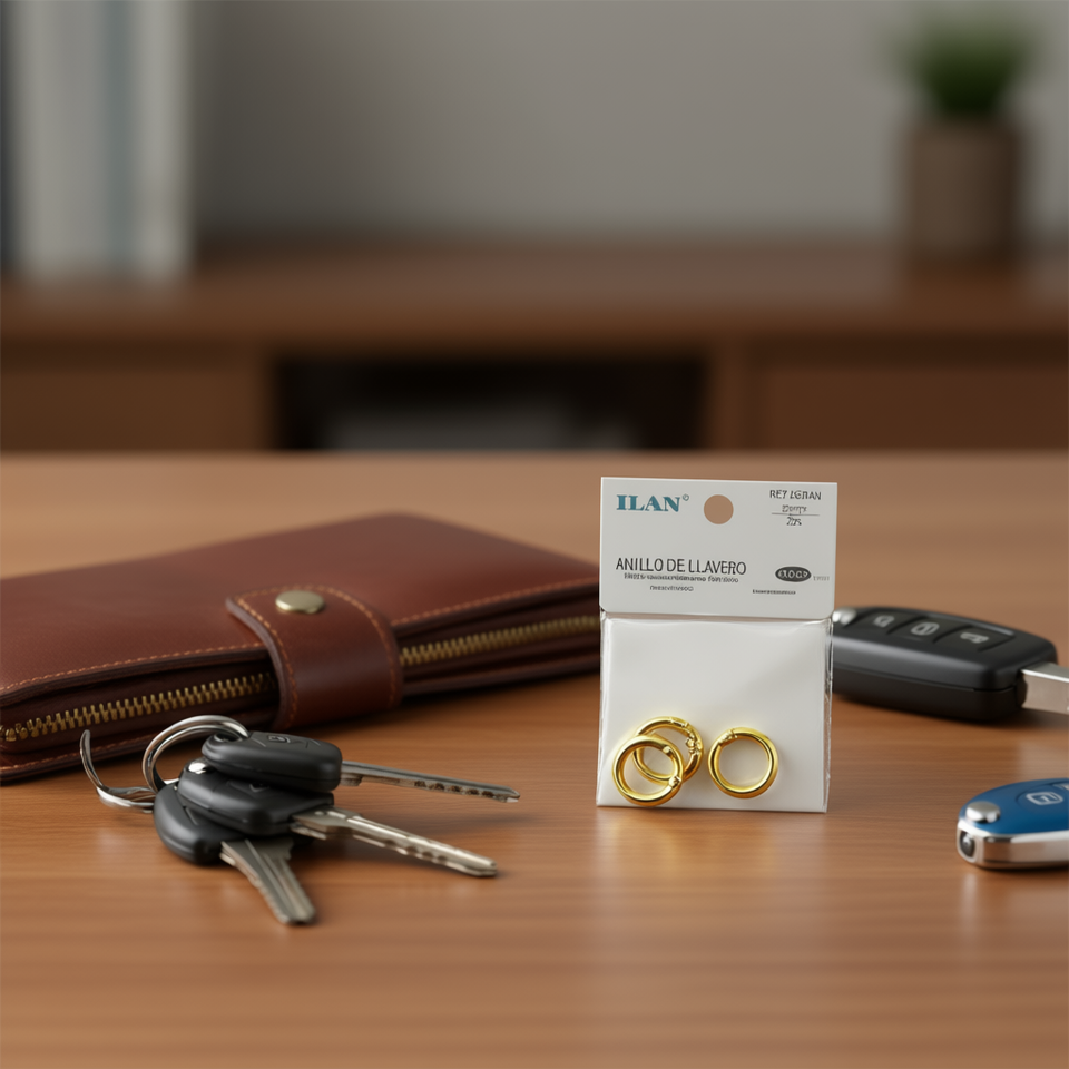 Porte-clés Ilan Gold Split 25 mm en alliage de zinc pour clés et accessoires