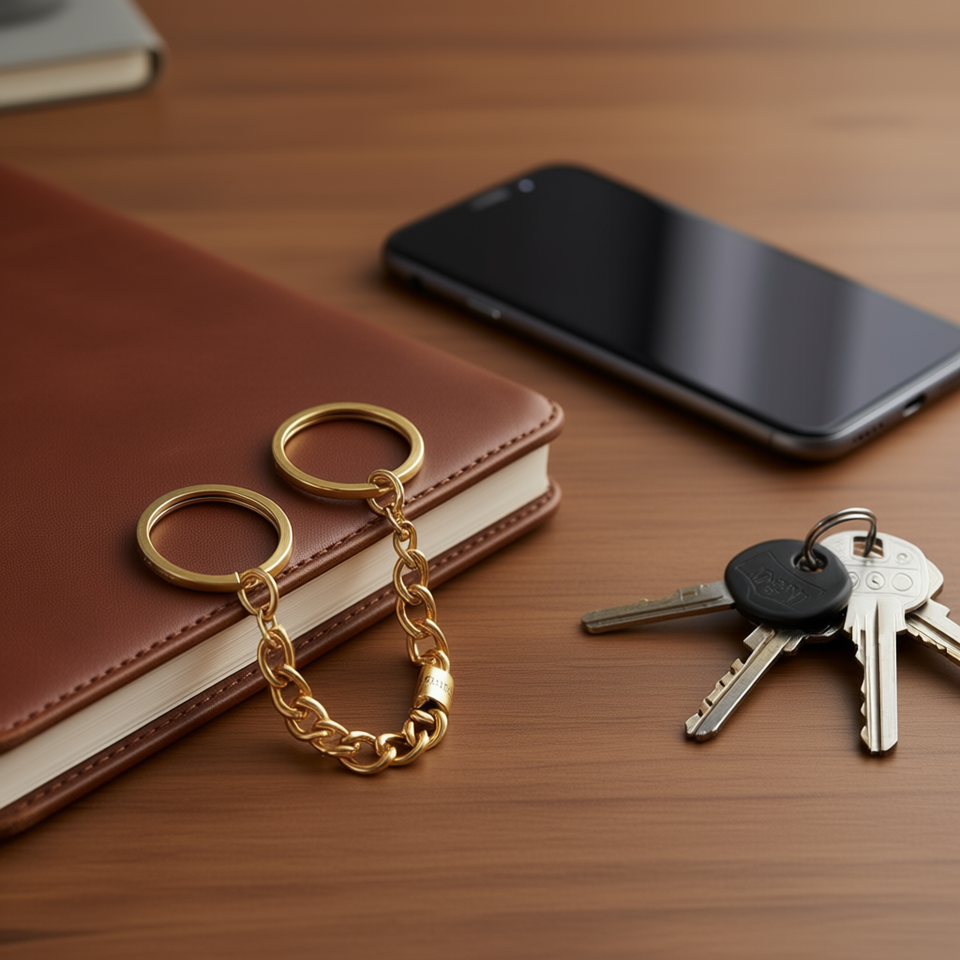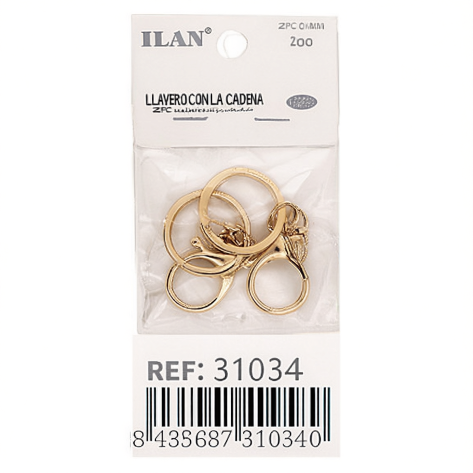 Porte-clés Ilan 60 mm couleur or, lot de 2, accessoire de mode, chaîne forgée toutes saisons