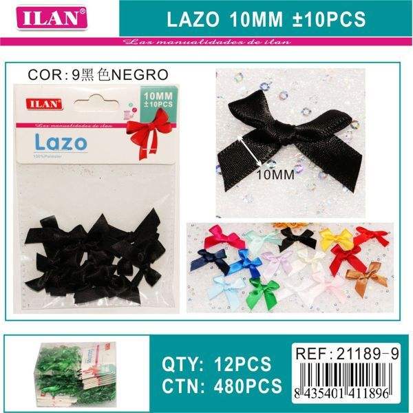 Noeuds en ruban noir Ilan Lazo 10 mm pour travaux manuels et décorations