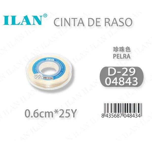 Ruban en satin Ilan 0,6 cm 25Y Couleur perle D-29