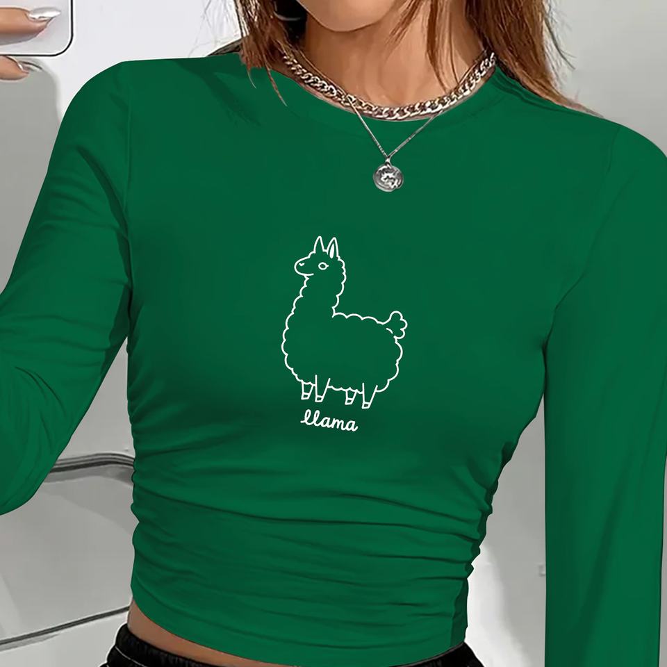 Illustrated llama with playful design women's fashion long sleeve shirt