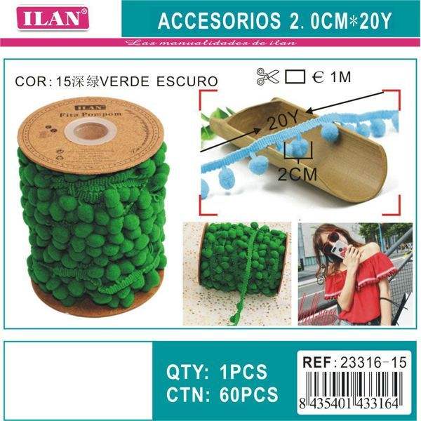 Ruban Pom-Pom Iln de 2,0 cm de large, 20 yards, vert foncé, pour décoration artisanale