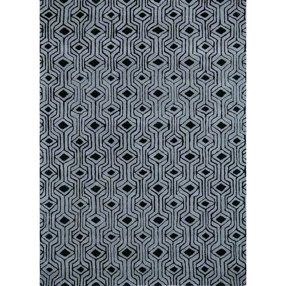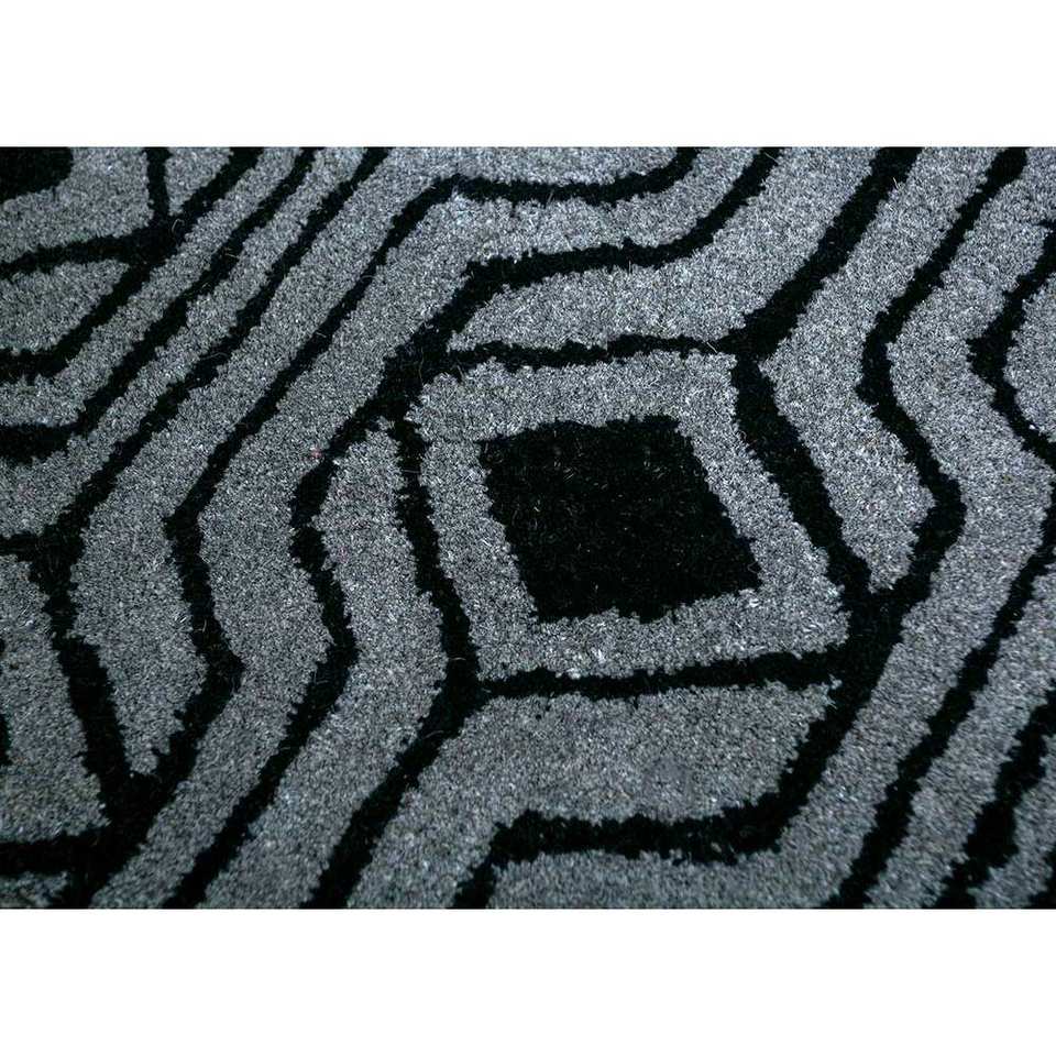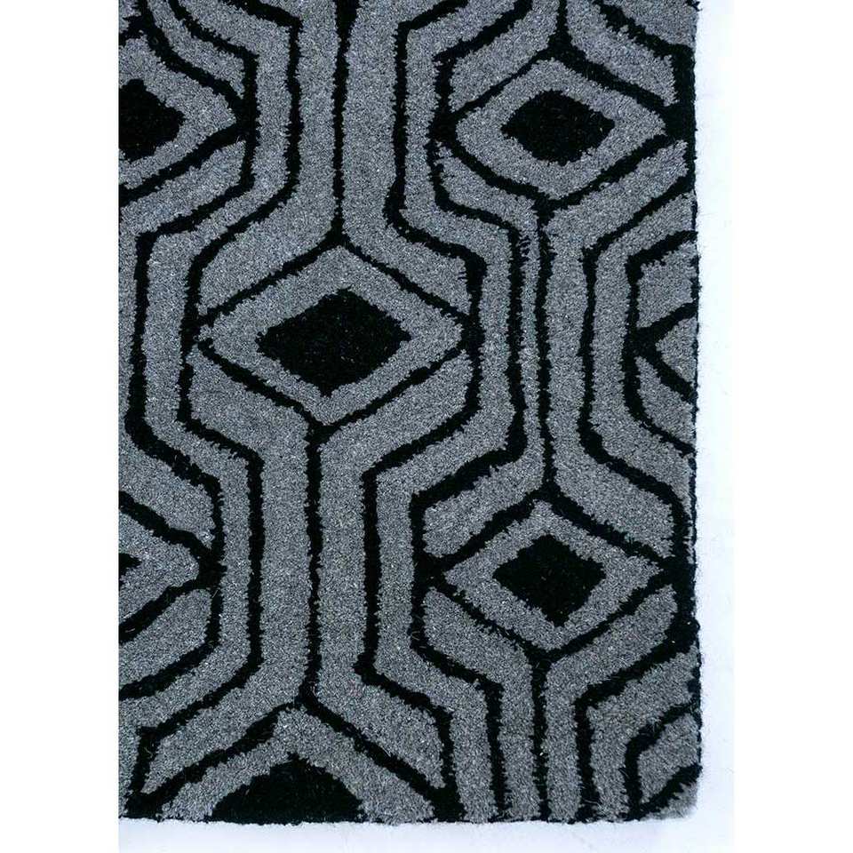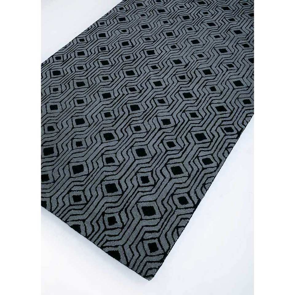 Tapis en laine tufté à la main Imara, géométrique, gris et noir, rectangulaire, pour couloir, tissage plat, viscose et jute, pour usage domestique - Tra-13372