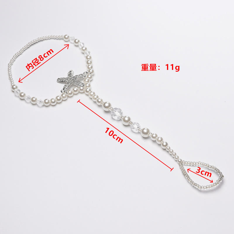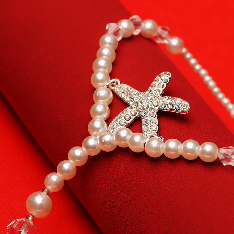 Chaîne de cheville en fausses perles avec breloque étoile, plaqué argent, élastique, perles, bijoux de fête pour femme, style romantique