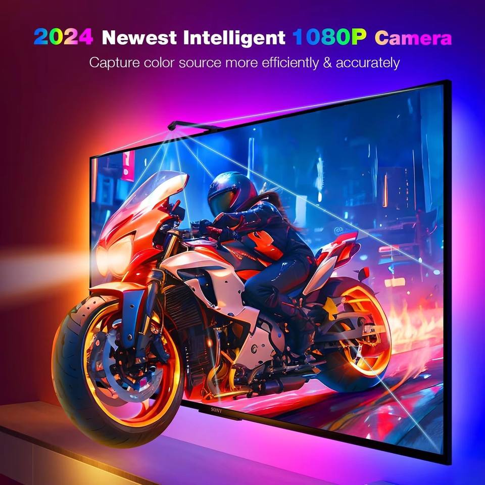 Bande lumineuse LED immersive pour jeux et home cinéma, compatible avec les téléviseurs intelligents/ordinateurs | Synchronisation de la caméra en temps réel, modes rythme musical et ambiance cinématographique