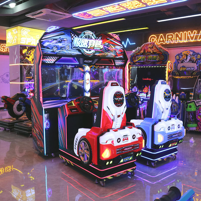 Machine de jeu d'arcade de course immersive « Speed Crossing » avec volant et retour de force – Défi de course au niveau ludique