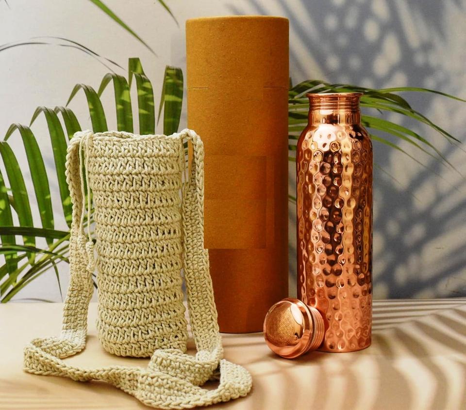 Booster d'immunité Bouteille d'eau en cuivre avec sac et boîte en jute Accessoires de verres de haute qualité disponibles Design élégant à vendre