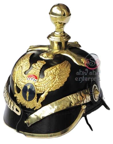 Imperial Leather German Pickelhaube Long Spike Prussian Helmet Agate Brass Plate Handmade Souvenir for German Military Officer