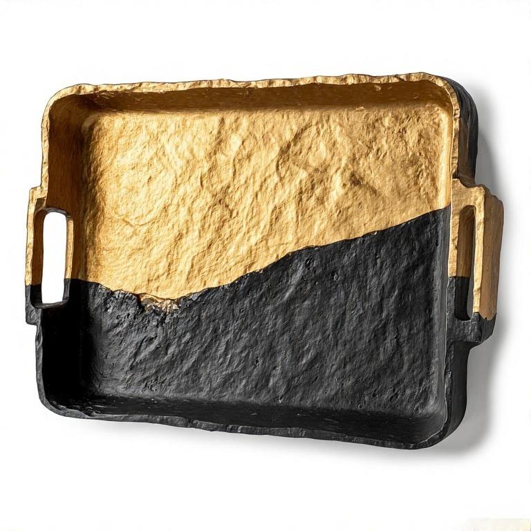 Plateau rectangulaire en aluminium avec corps coulé Imperial Reach avec poignées latérales ornées et finition brossée pour intérieur Premium