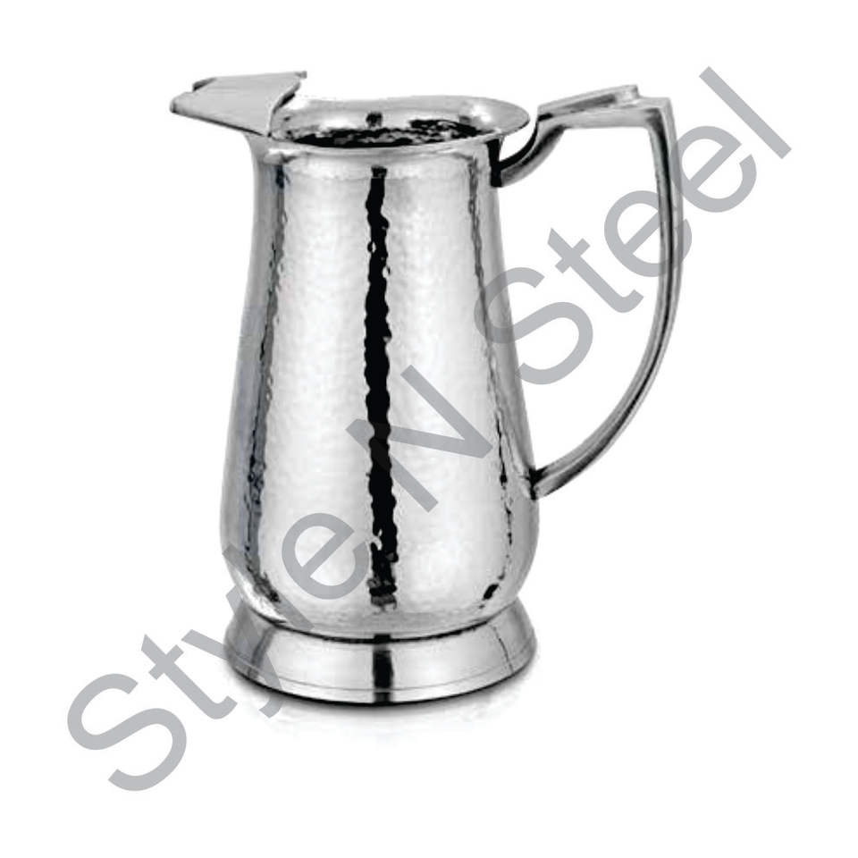 Carafe à eau de service impériale avec bec unique couleur argent miroir poli acier inoxydable à paroi unique martelée au prix de gros