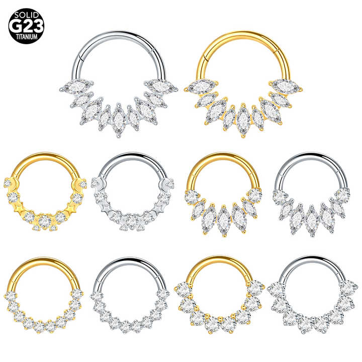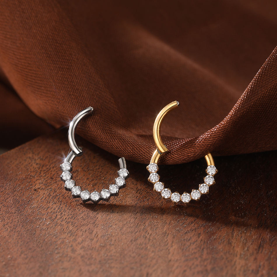 Anneaux à segments articulés en titane de qualité implantée avec zircons blancs pavés face à l'avant Anneau de septem de nez doré Boucles d'oreilles Daith