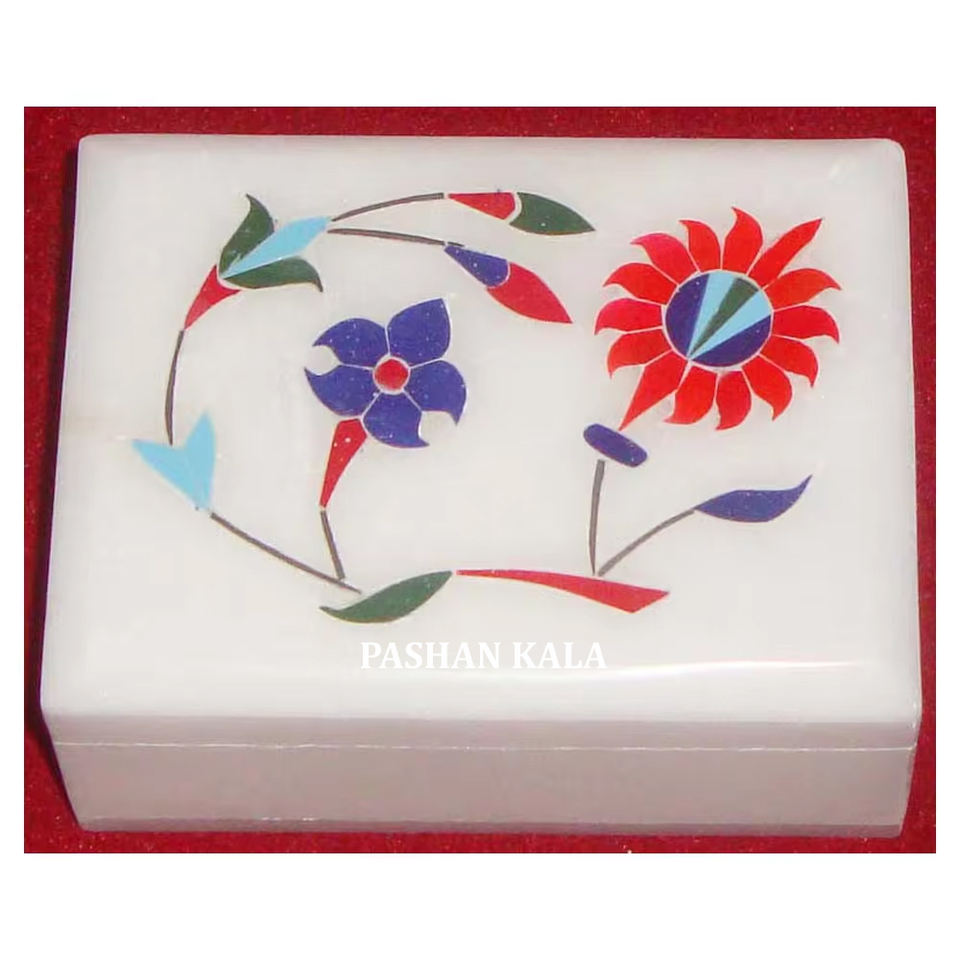 Importateur et exportateur de boîtes à bijoux de forme rectangulaire en incrustation de marbre blanc faites à la main pour cadeau d'affaires et décoration intérieure