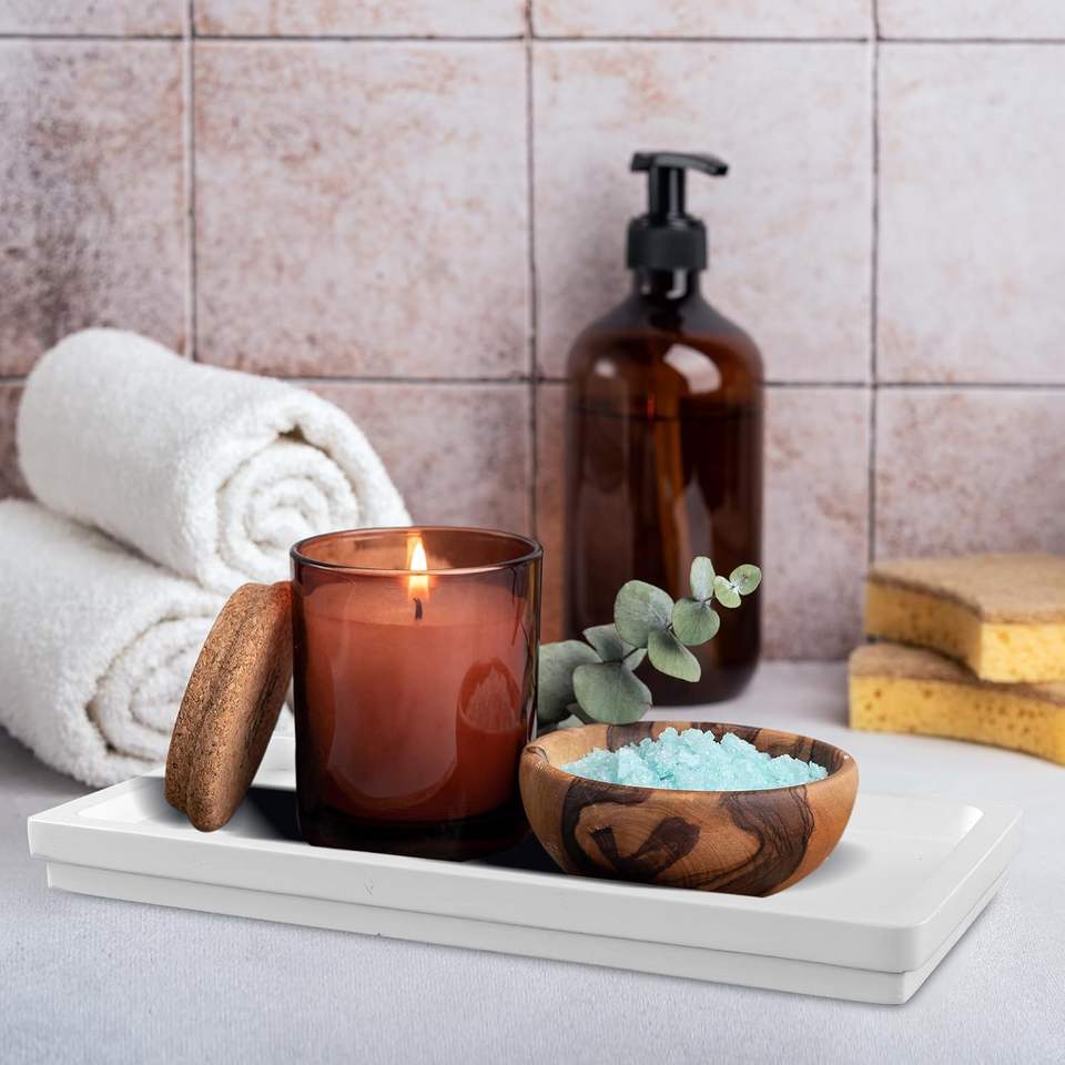 Impressionnant plateau de comptoir de salle de bain en acacia plateau organisateur Rectangle plateau à savon adapté à la baignoire décoration de la maison pour bijoux