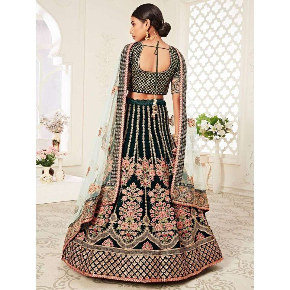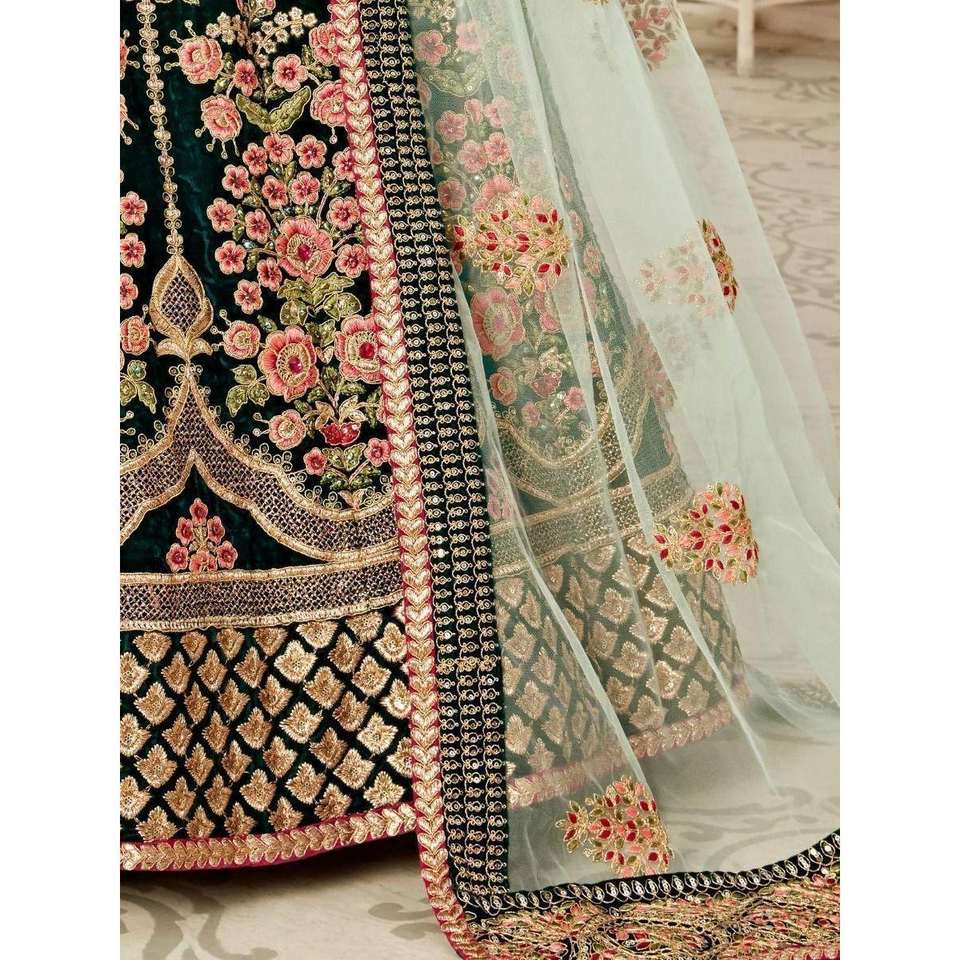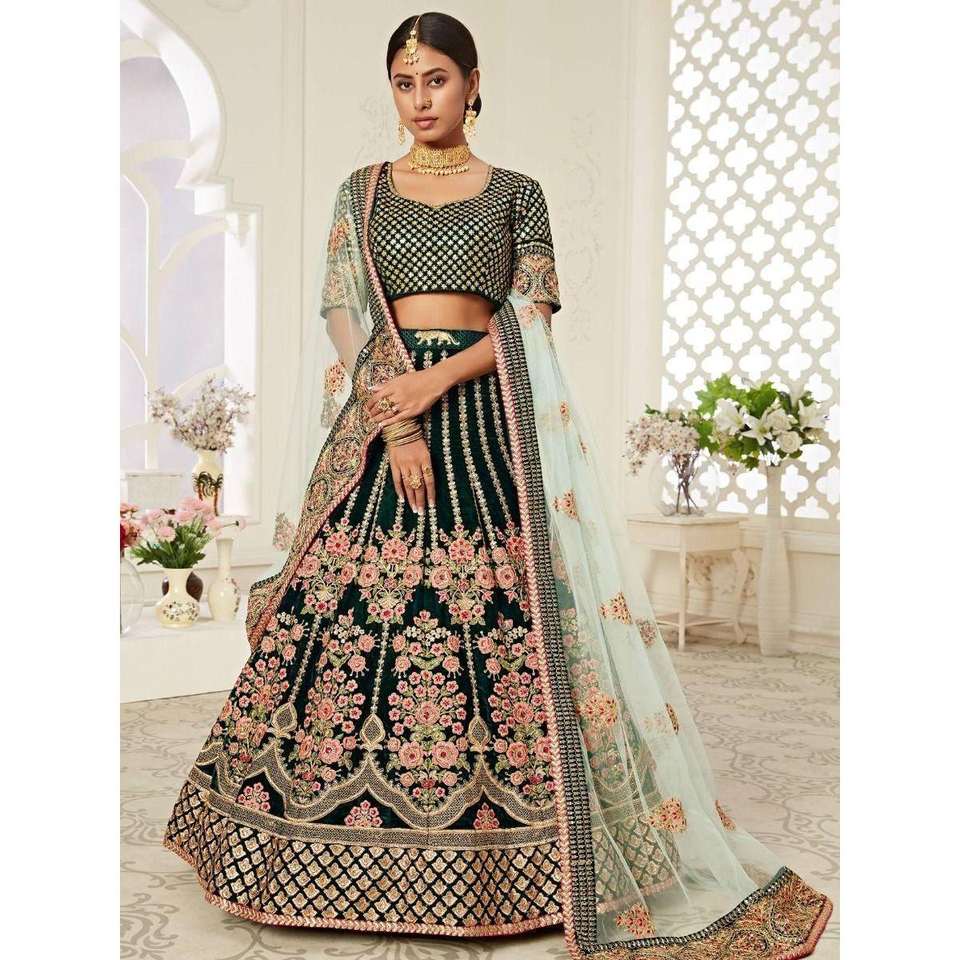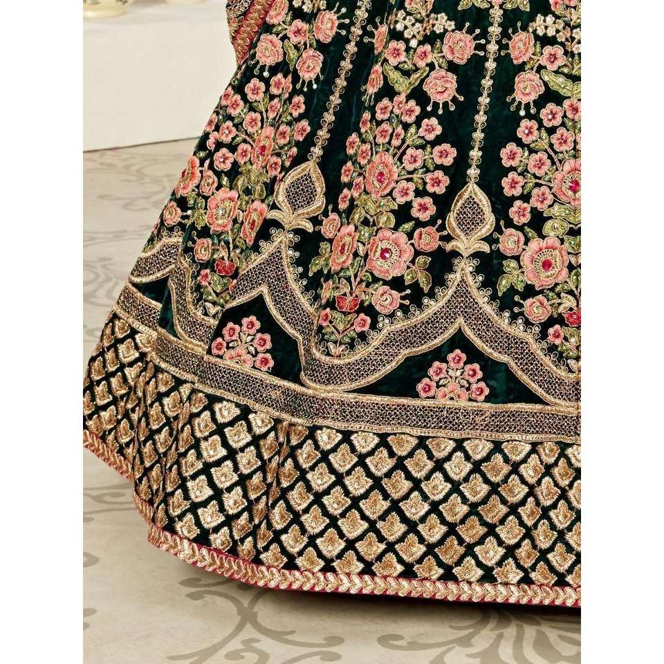 Tenue de mariage impressionnante en velours brodé vert Lehenga Choli