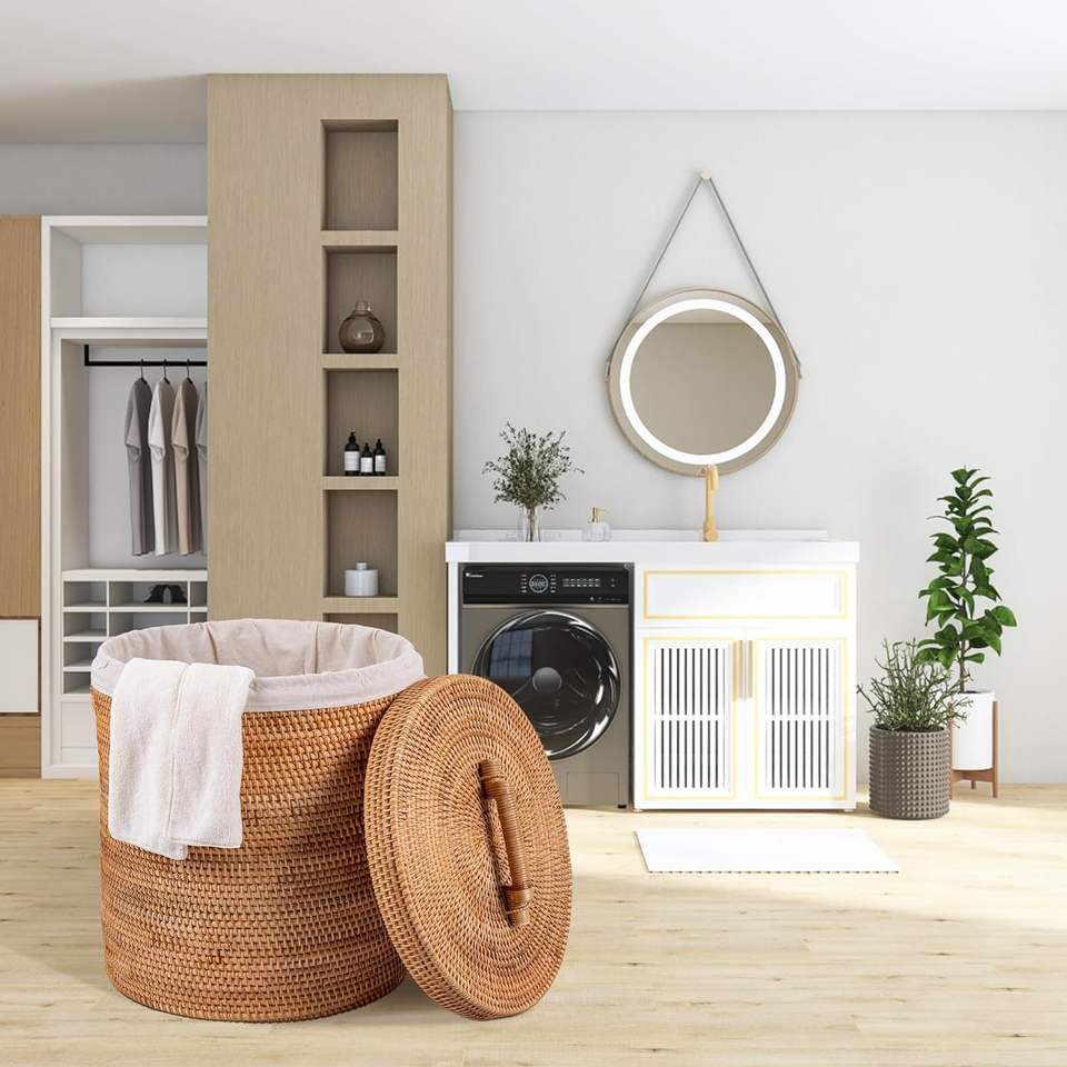 Impressionnant panier à linge en rotin avec couvercle panier à linge en rotin avec sac à doublure amovible grands paniers en osier rond