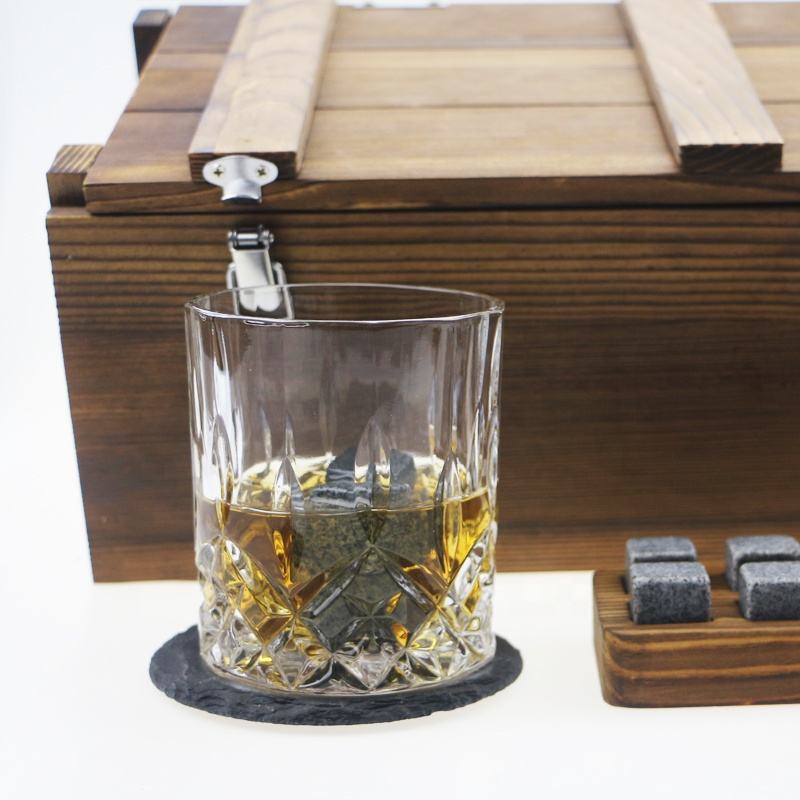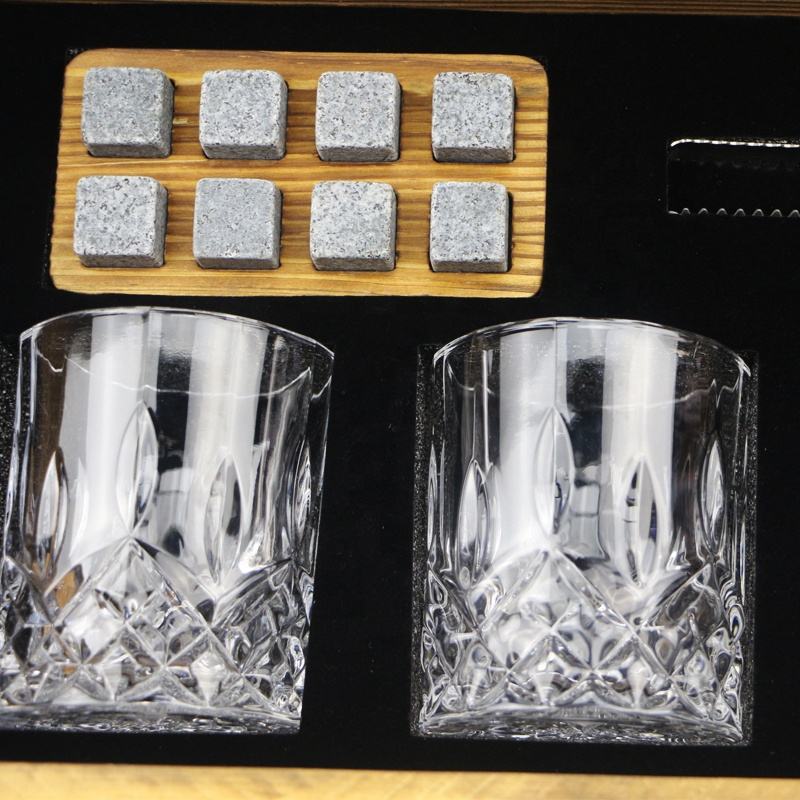 Ensemble de pierres à Whisky artificielles avec 2 verres, boîte de luxe faite à la main avec 8 Cubes à glace en granit et pierres à Whisky