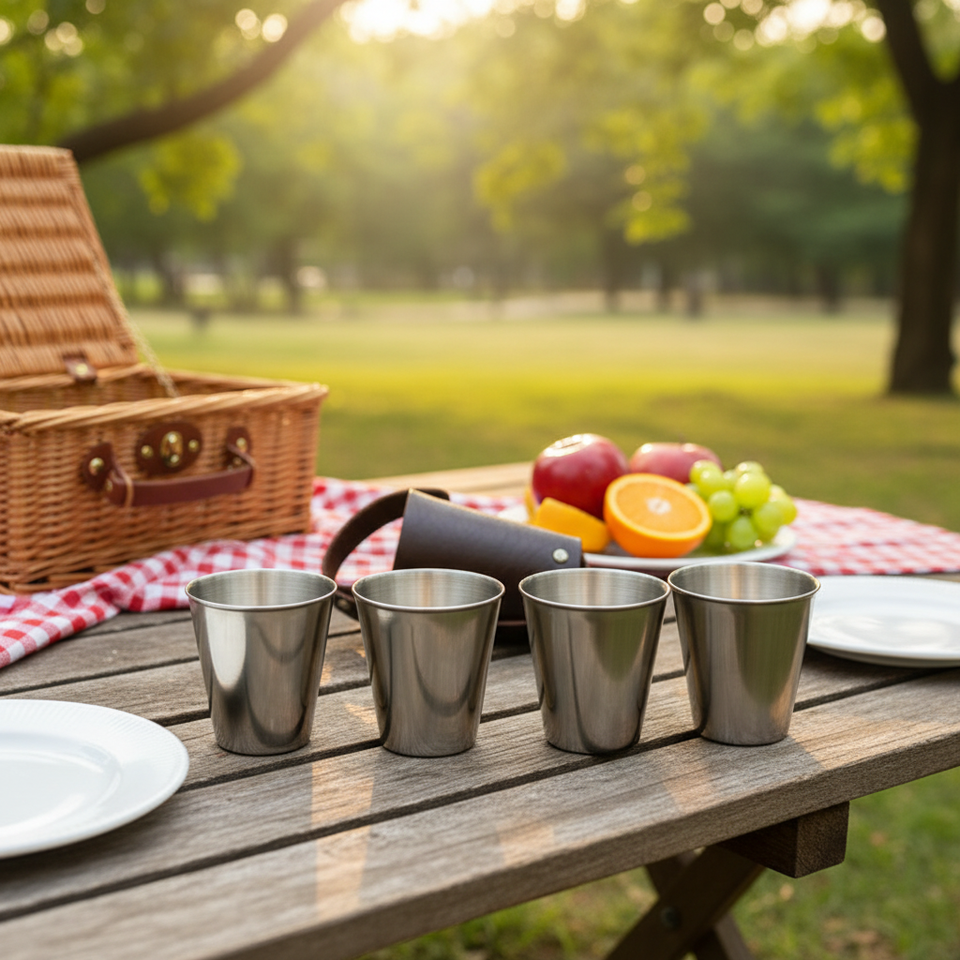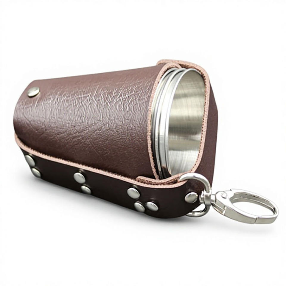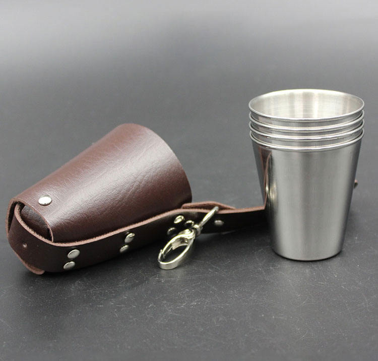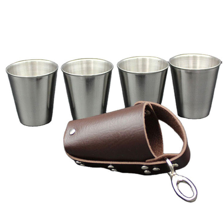Imra Impex – Lot de 4 verres à shot incassables avec étui de voyage en cuir PU – Mini-tasses à whisky et vodka – Couleur et logo personnalisables 2026