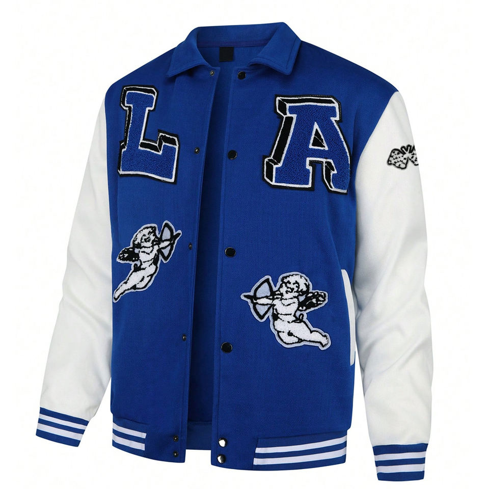 Dans une conception différente Confortable Design Unique Bloc de couleur bleu et blanc et lettre patché College Baseball Varsity Jackets