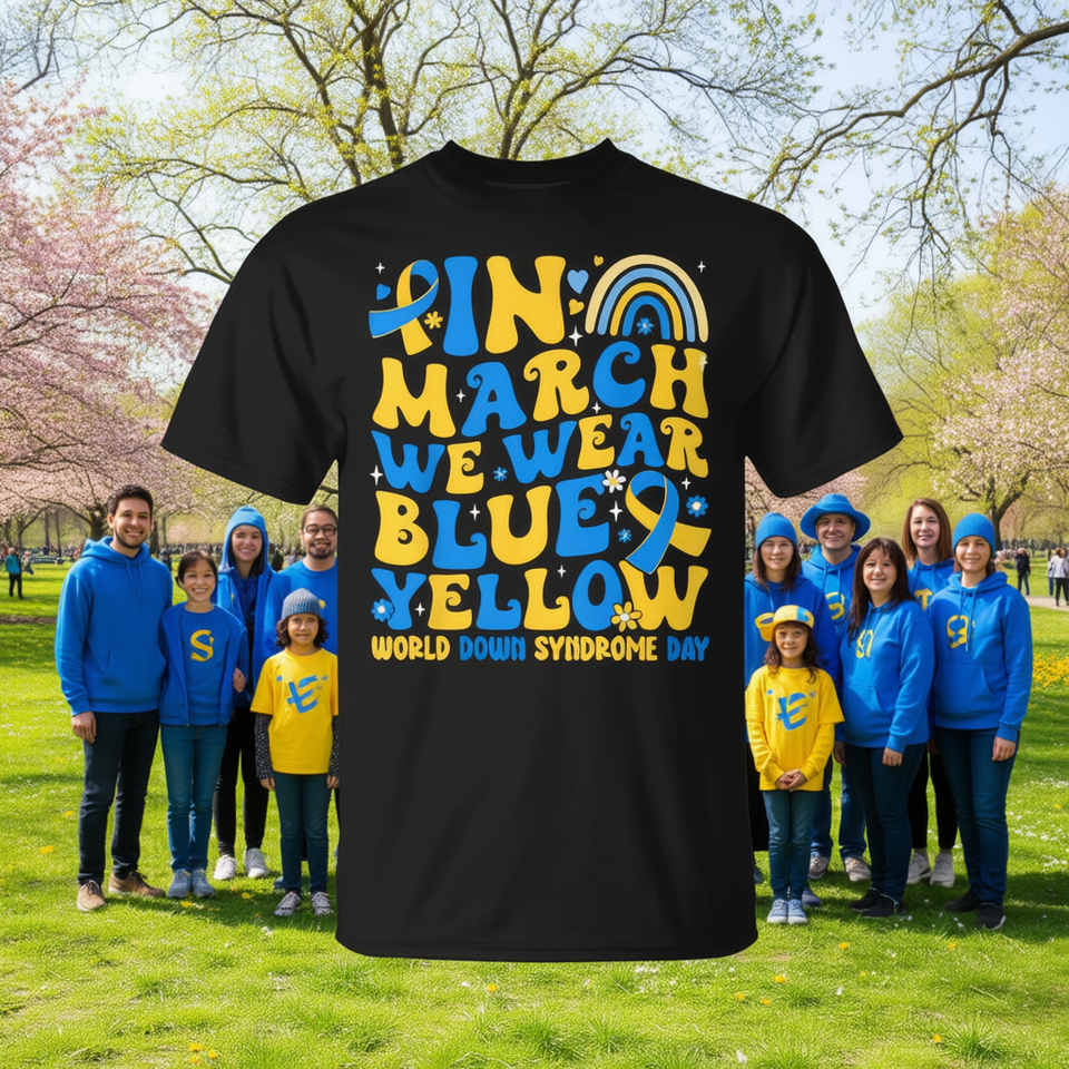 En mars, nous portons du bleu et du jaune pour la Journée mondiale de la syndrome de Down - T-shirt