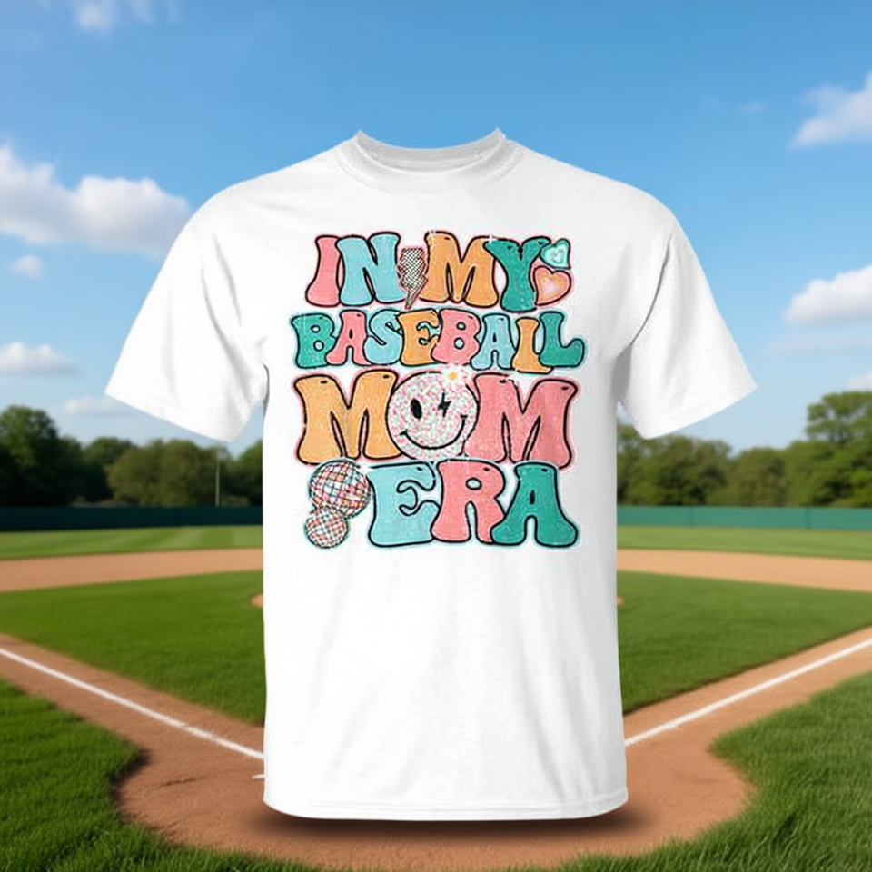 T-shirt In My Baseball Mom Era, design Softball Smile Groovy Mama
