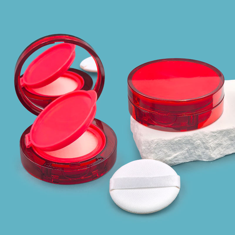 Boîte ronde transparente rouge à coussin d'air de 15g, boîte d'emballage pour fond de teint crème bbcc avec bouton, boîte en plastique