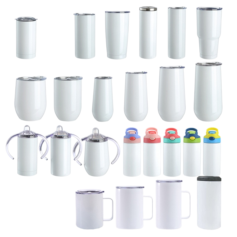 Tasse isolée à double poignée de 20oz en stock, transfert de chaleur par sublimation en métal moderne pour voiture, petite tasse élégante à sublimation