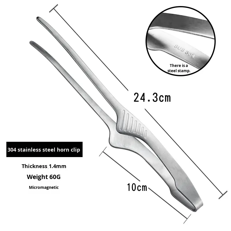 Pince à nourriture en acier inoxydable 304 pour cuisine japonaise, outil métallique durable pour barbecue coréen