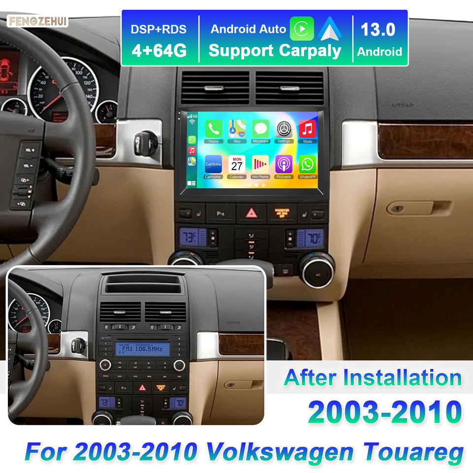 En stock, autoradio Android pour Volkswagen Touareg 2003-2010, VW CarPlay 64G Android 13, écran 9 pouces, lecteur DVD automatique
