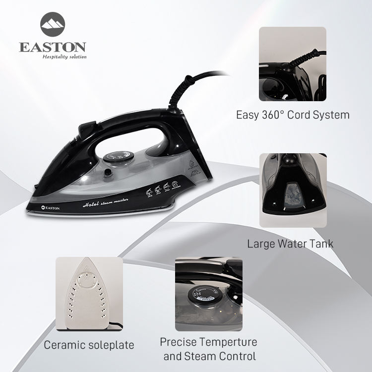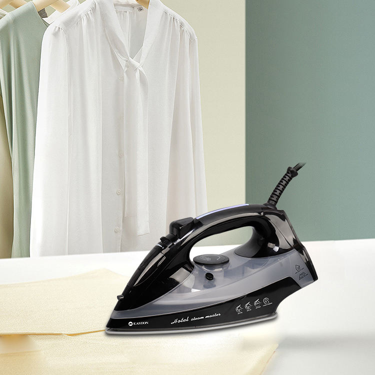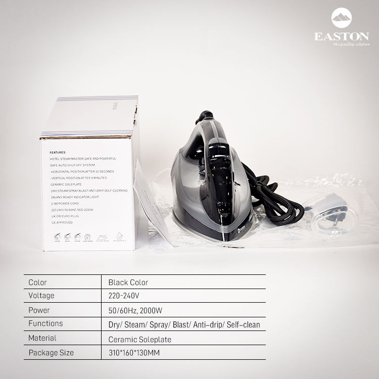 Fer à repasser à vapeur professionnel avec semelle en céramique à arrêt automatique, noir, 2000W, fonction de nettoyage, en stock