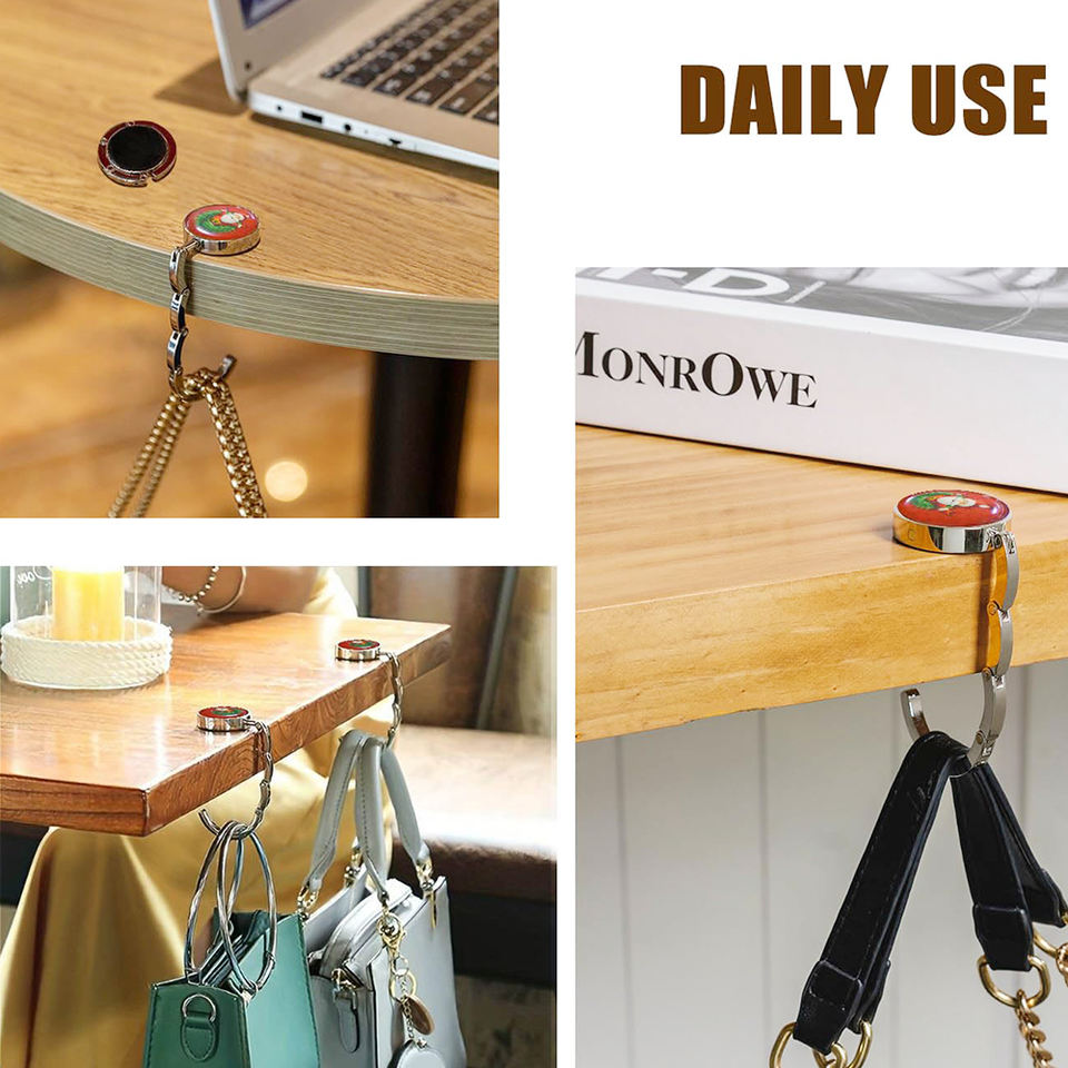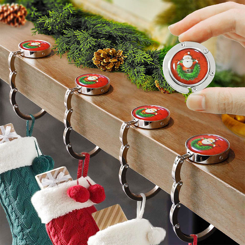 En stock porte-bas de Noël en métal en vrac pour manteau décor de Noël personnalisé pliable crochet sac cintre pour bureau