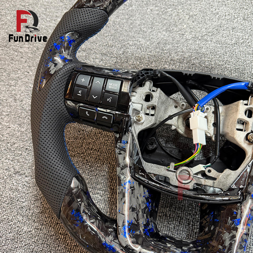 Volant en fibre de carbone forgée bleue CE Toyota en stock pour Hilux, Fortuner, Camry, Land Cruiser, Prius, Hiace, Corolla, GR86, Vigo