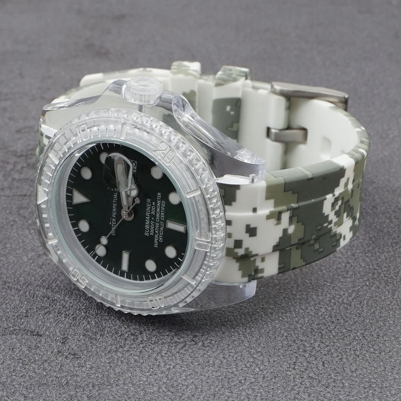En stock Bracelet de montre de plongée en caoutchouc de silicone imperméable à l'eau imprimé camouflage 20mm pour Moonswatch