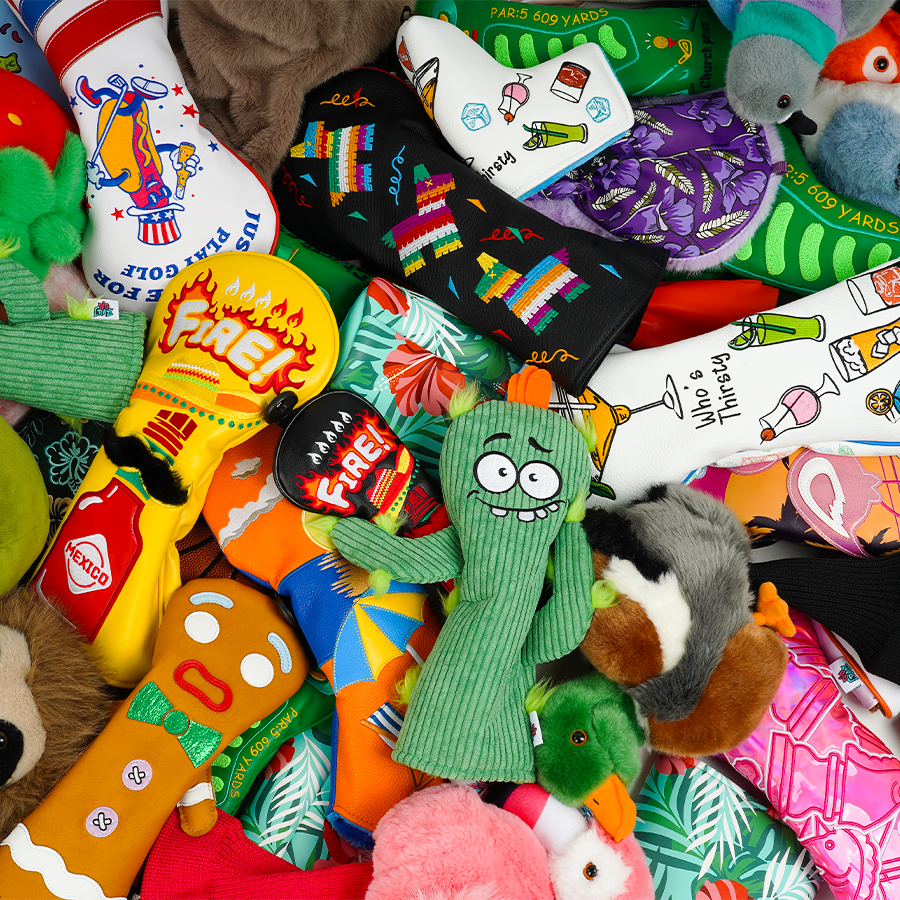 Housse de tête de club de golf en cuir PU coloré en stock, motif bière et ananas