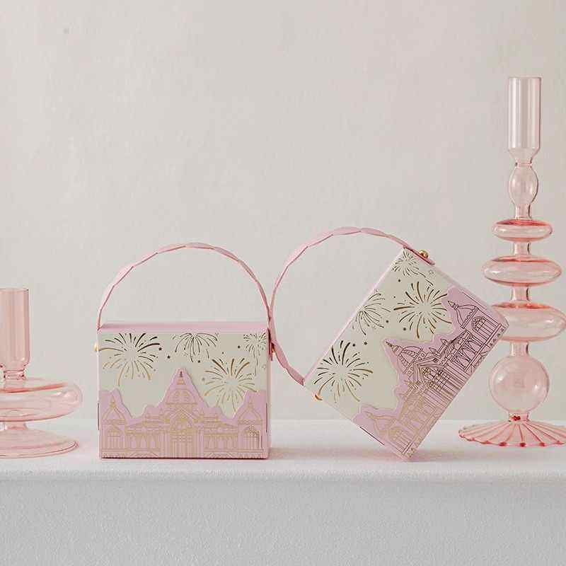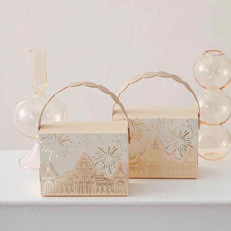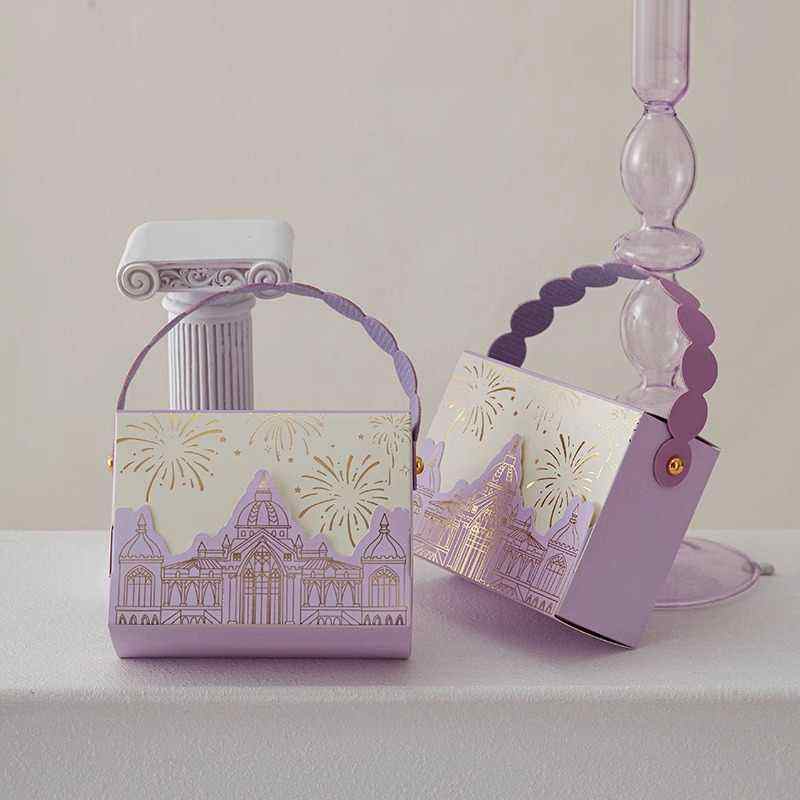 [En Stock] Creative Château De Mariage Boîte De Bonbons À Main Boîte D'emballage De Bonbons Feux D'artifice Or Estampage Logo Impression Princesse Boîte
