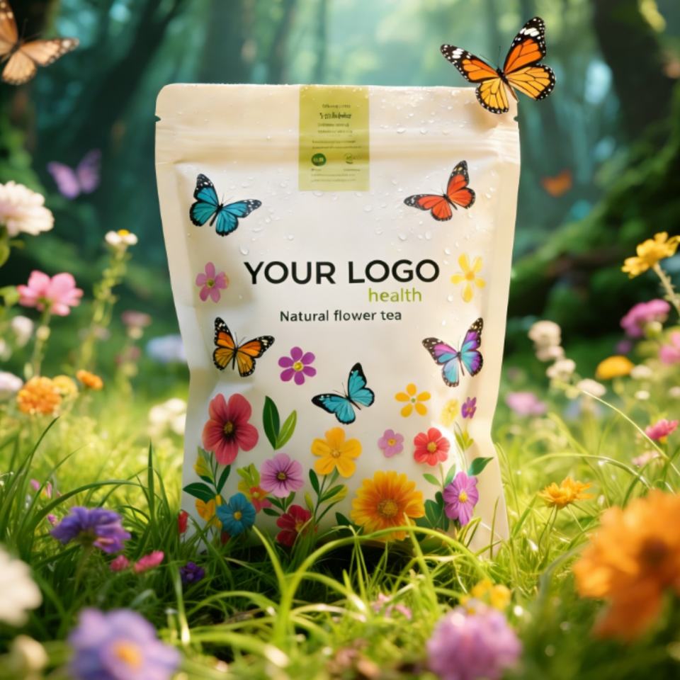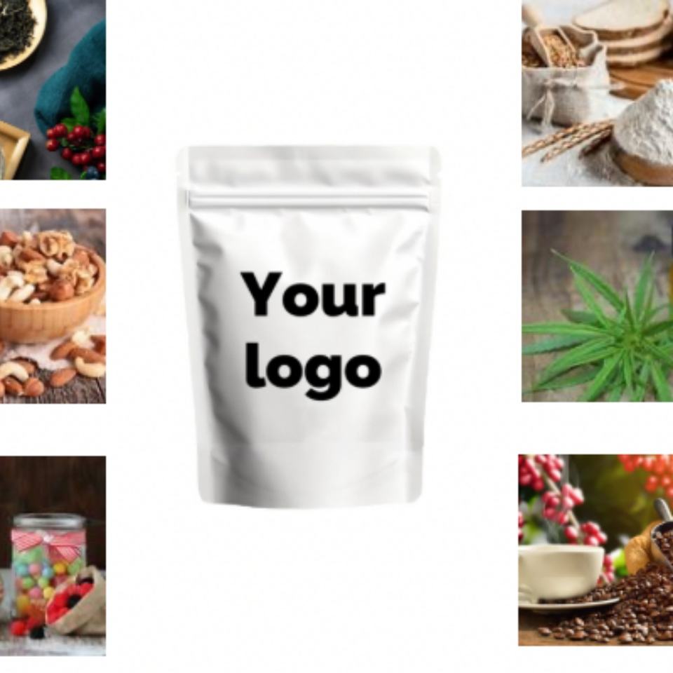 Sacs Mylar personnalisés avec logo imprimé, finition mate, pour emballage alimentaire, thé et fleurs, avec fermeture éclair en plastique, couleur mate, qualité alimentaire, en stock