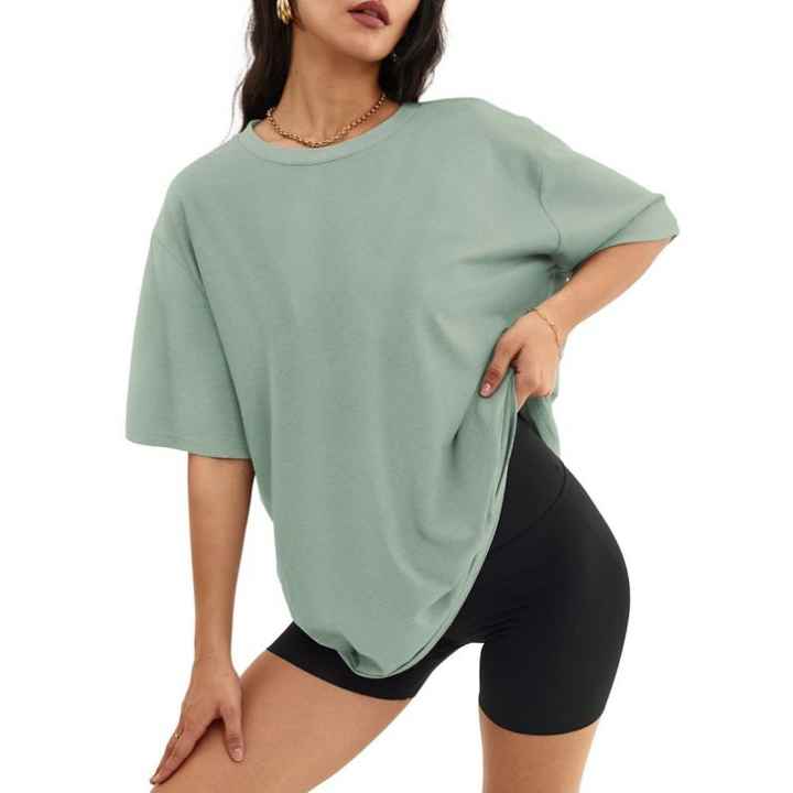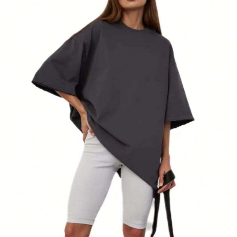 En stock t-shirts femme en polyester tricoté écologique vêtements de base couleur unie été décontracté coupe régulière