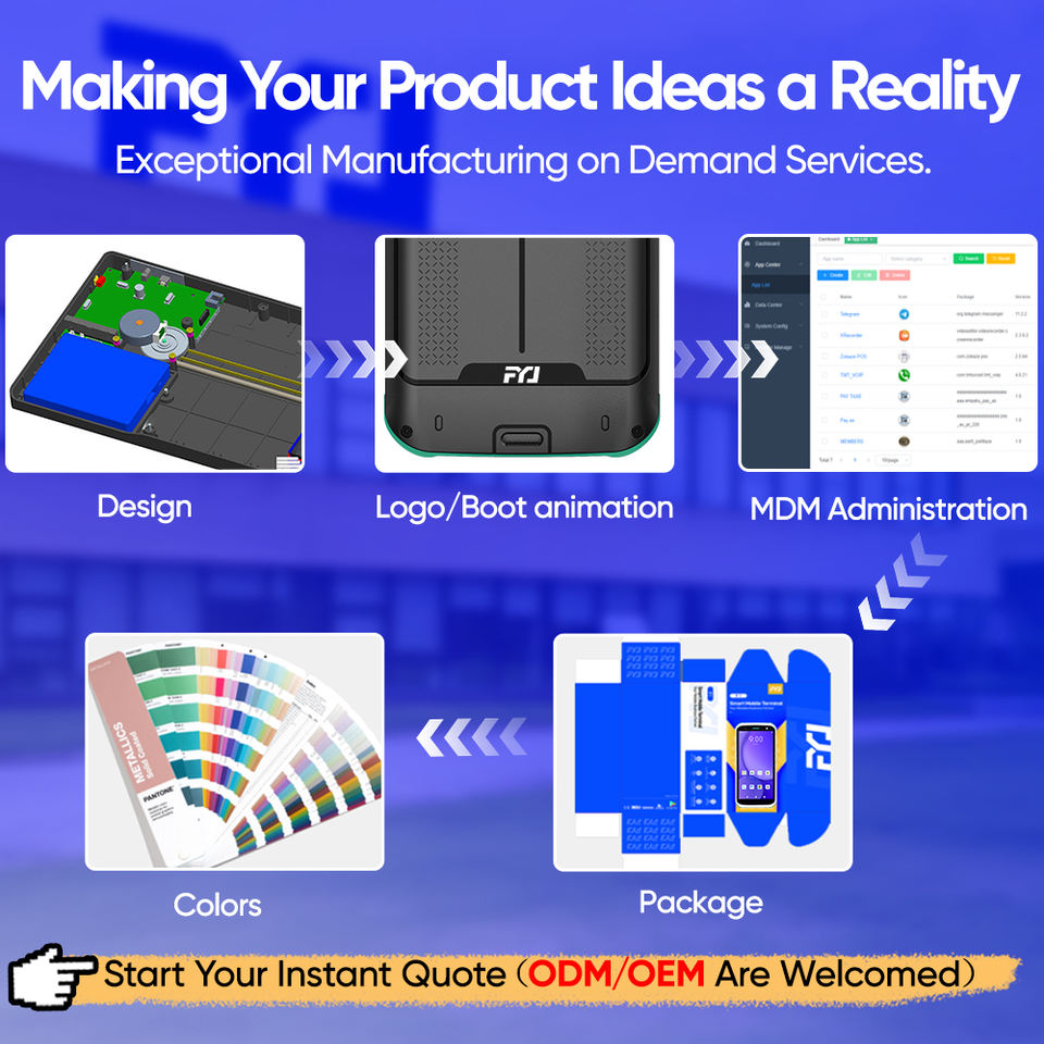 En stock FYJ F9826 5G PDA personnalisé avec lecteur de codes-barres, batterie 5000 mAh, Android 14, écran tactile 6 pouces dernière génération, fonctionnement fluide