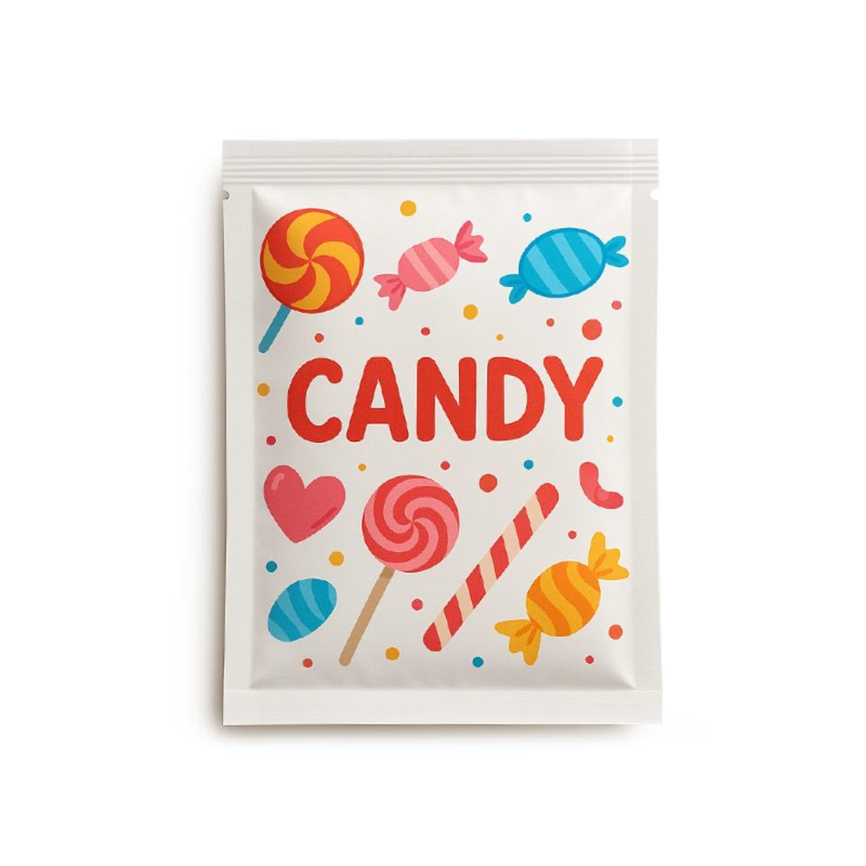 En stock, sac en plastique Mylar personnalisé avec logo imprimé en usine, scellé sur 3 côtés, pour emballages alimentaires de biscuits et bonbons, échantillon de sac en plastique Mylar
