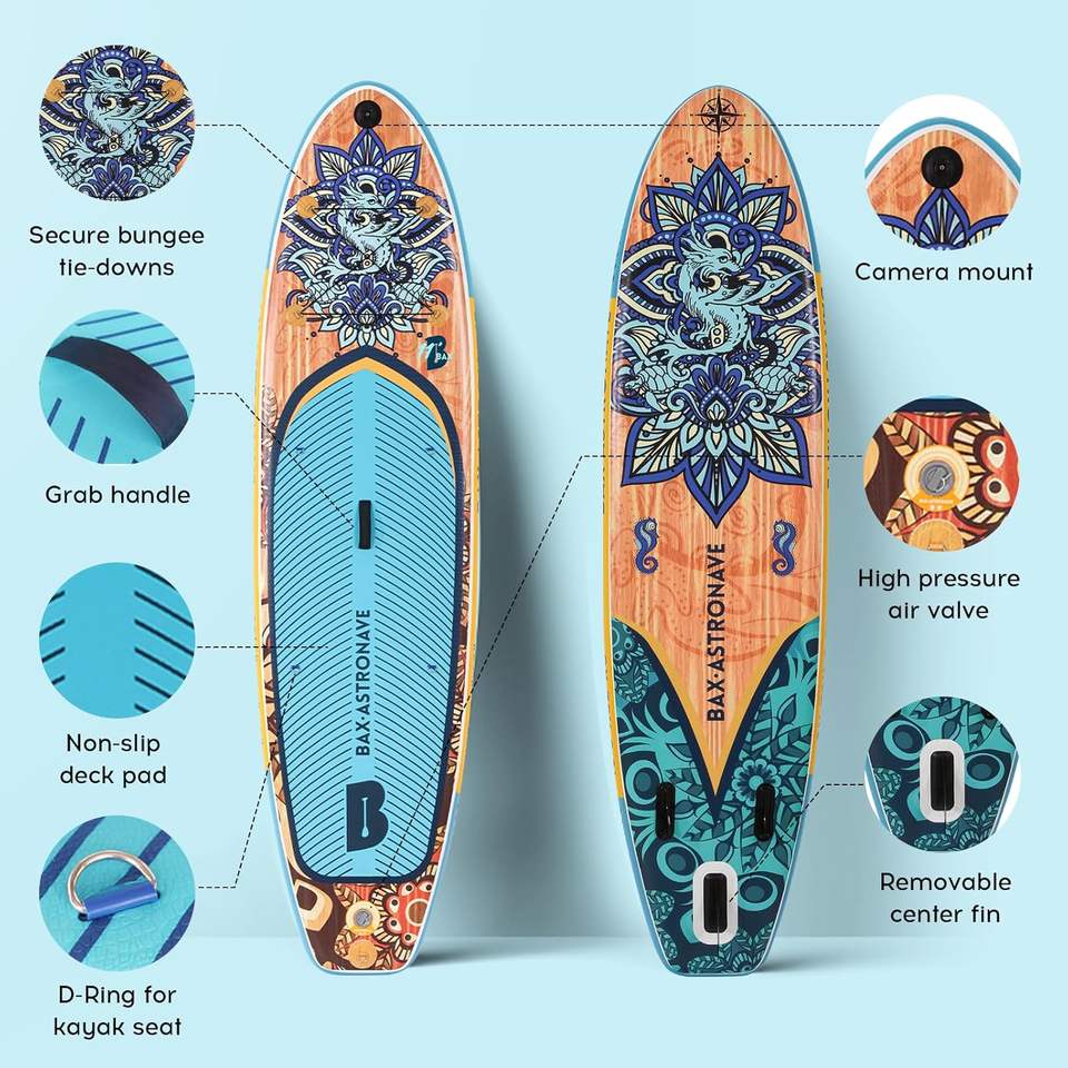 Détails des accessoires d'emballage:pale, pagaie, laisse, pompe, kit de réparation, sac à dos
