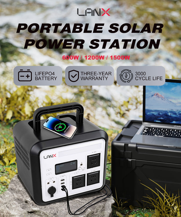 En stock, livraison rapide, stockage d'énergie domestique, batterie LiFePO4 600W 1200W 1500W, système d'énergie solaire portable, centrale solaire