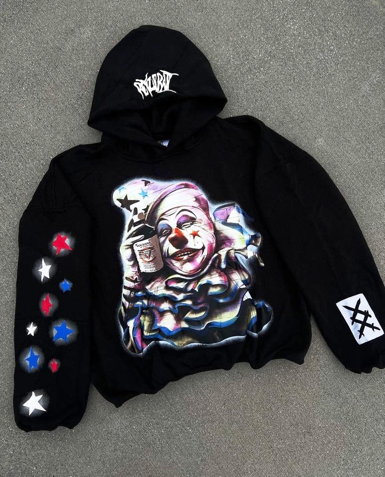 Stock High Quality Oversized Print Pattern Drop Shoulder Winter Hoodie Casual Streetwear Custom Logo Hooded Pullover 100% Cotton