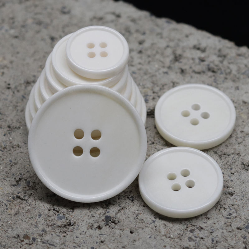 En stock, boutons ronds plats de haute qualité à 4 trous, en os blanc, taille complète, boutons en os de vache véritable pour costumes, artisanat naturel