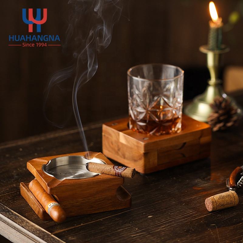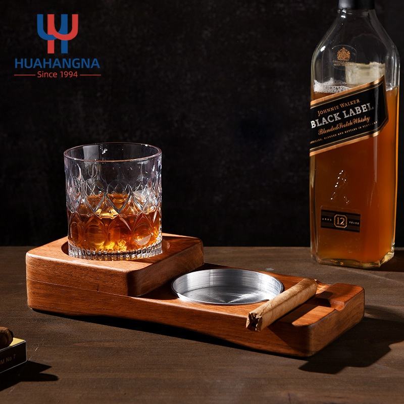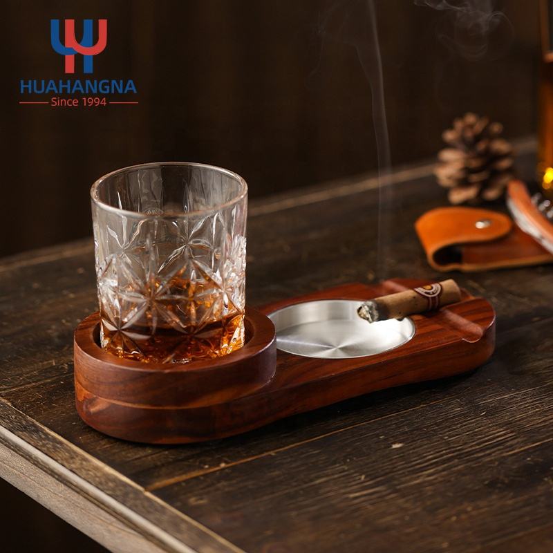 Nom du produit:Cendrier en bois pour cigares, sous-verre, plateau pour verres à whisky et porte-cigares