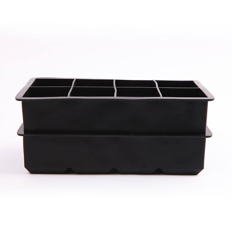 En stock, bac à glaçons carré en silicone noir platine King, 8 cavités, 4,8 cm, capacité de 800 ml, moule à glaçons facile à démouler sans couvercle