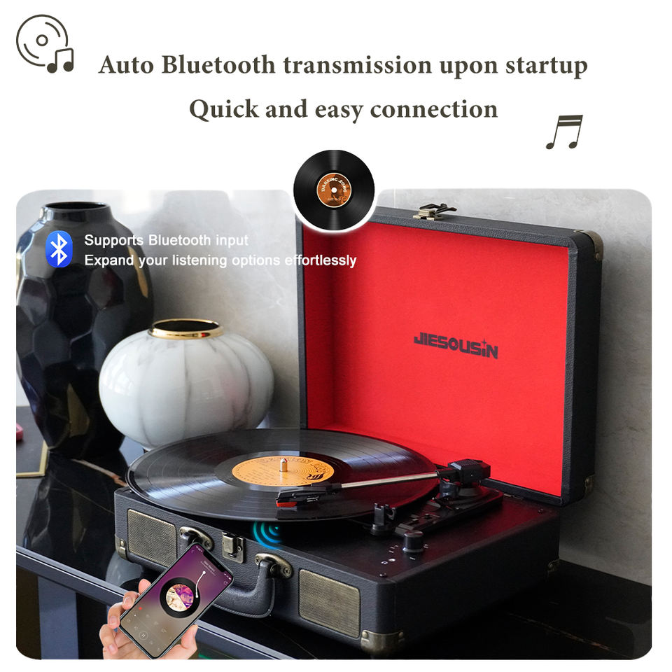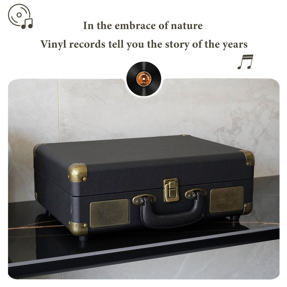 En stock, faible MOQ, tourne-disque vinyle portable en cuir avec haut-parleurs intégrés, 3 vitesses, BT5.0+ Hi-Fi stéréo