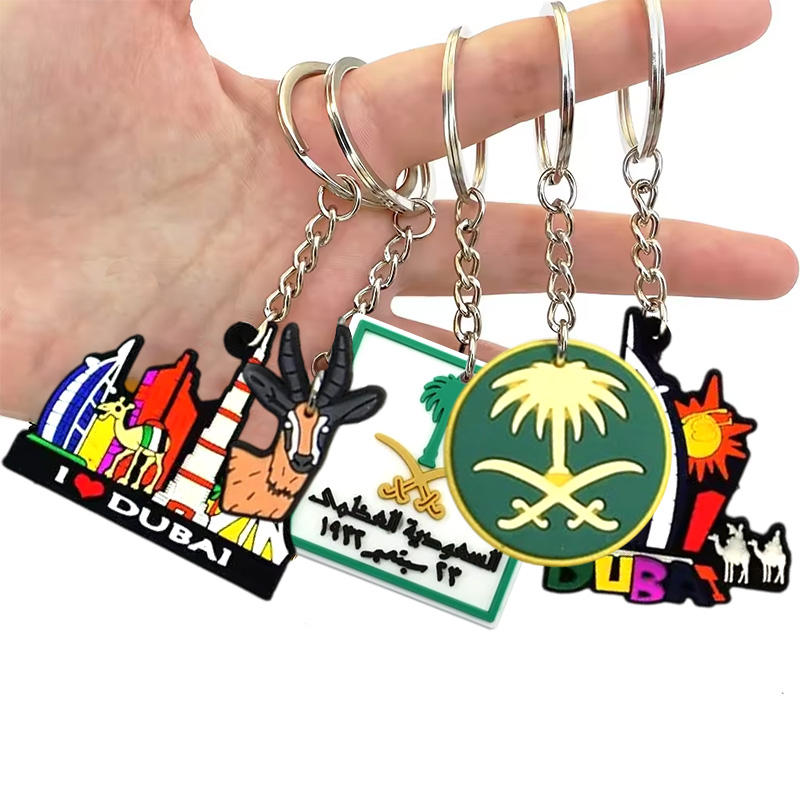 En Stock Moyen-Orient PVC Porte-clés Ville Skylines Emblèmes En Caoutchouc Souple Charmes Région Du Golfe Arabe Touriste Souvenir Cadeaux Personnalisé
