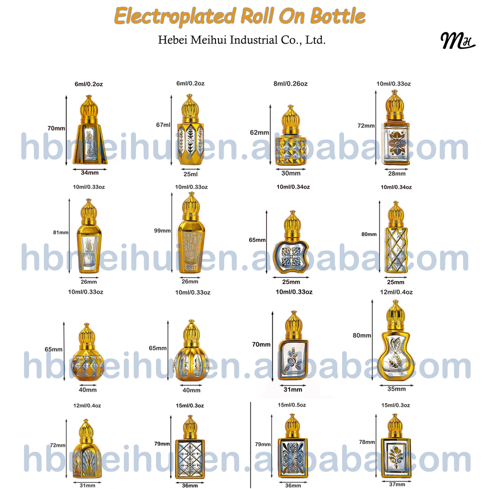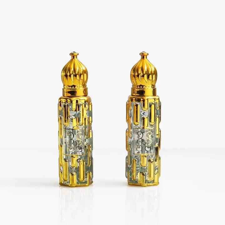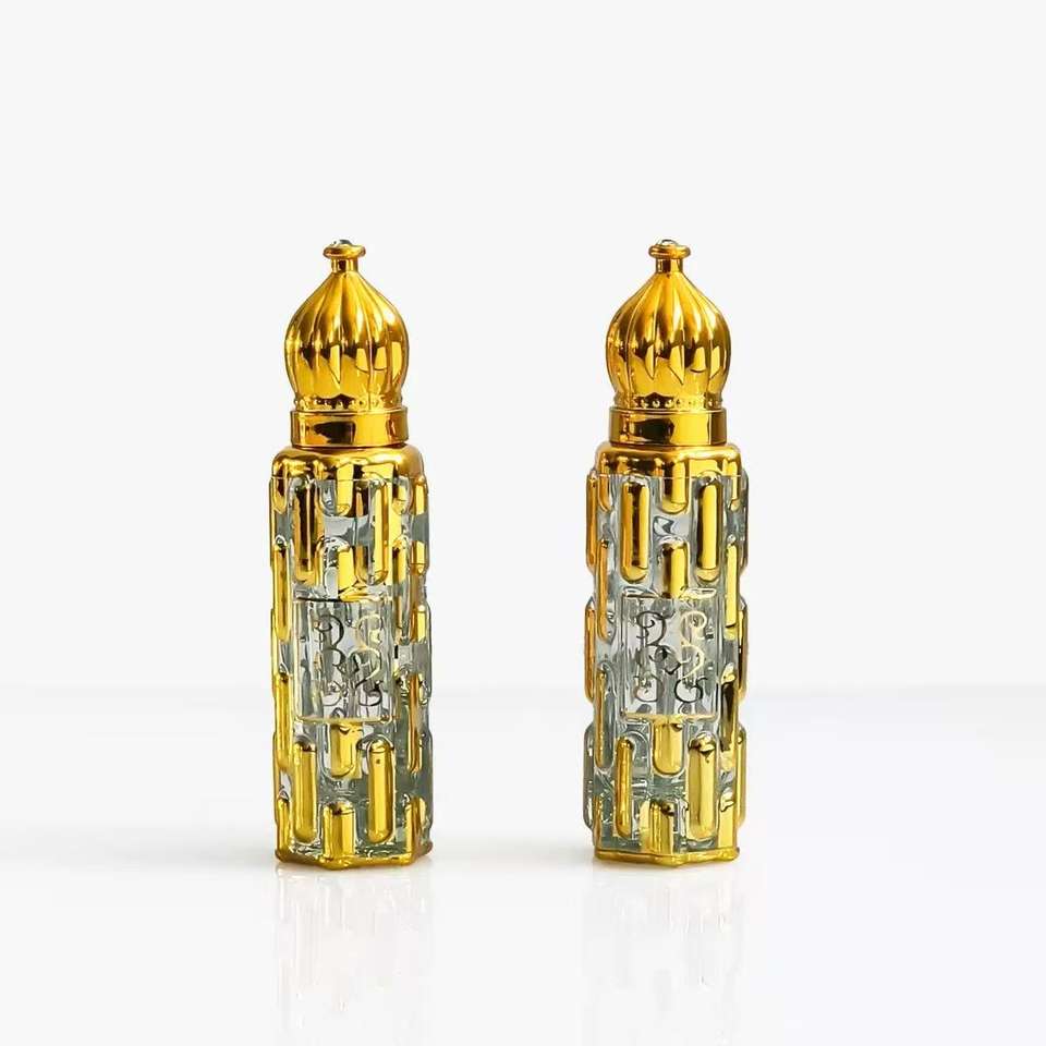 En stock, flacon de parfum en verre à bille de style moyen-oriental, plaqué or, 0,2 oz, 0,4 oz, flacons à bille en verre vides